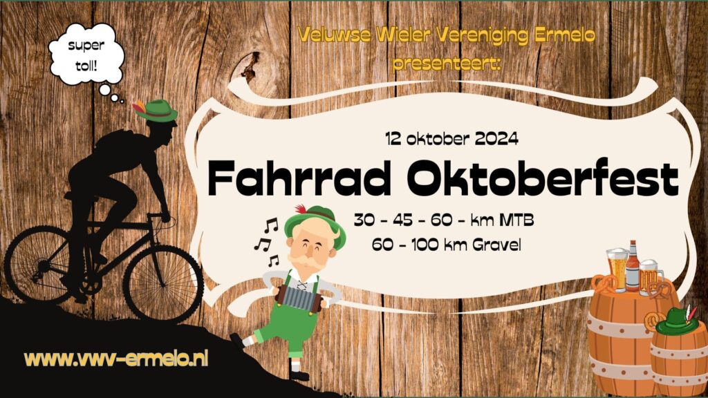 Op zaterdag 12 oktober 2024 vindt onze populaire “Ermelose MTB Tocht” plaats! Kies uit afstanden van 30, 45, of 60 km en ontdek de prachtige Veluwse bossen en heide. Ook de “Ermelose Graveltocht” wordt gereden, met afstanden van 60 en 100 km. Startlocatie is De Muzenhof, Ermelo. Na afloop is er een Oktoberfest met Duitse […]